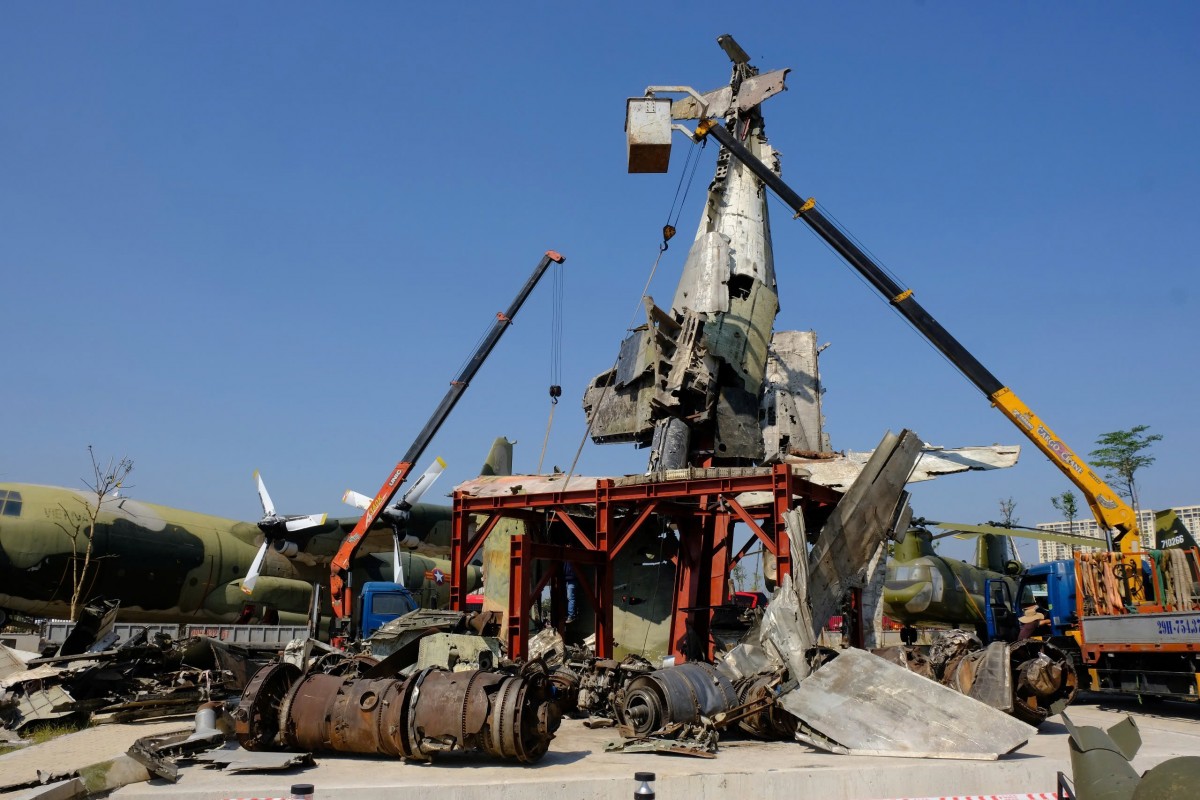 | Khu vực xác một chiếc máy bay Mỹ đang trong giai đoạn chuẩn bị trưng bày. |