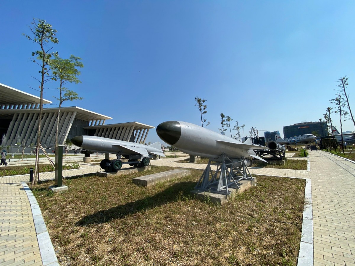 | Nhiều tên lửa được trưng bày an toàn bên ngoài toà nhà bảo tàng. |