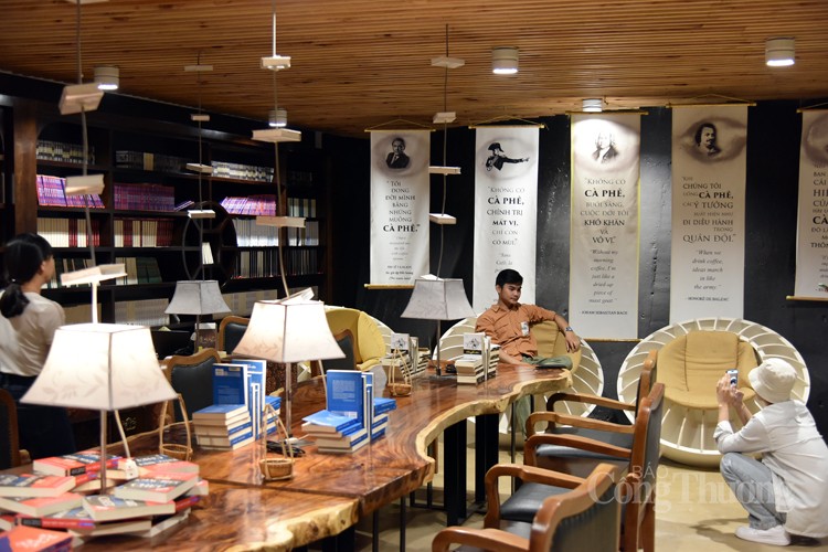 | Khách nước ngoài thưởng thức cà phê tại Bảo tàng |