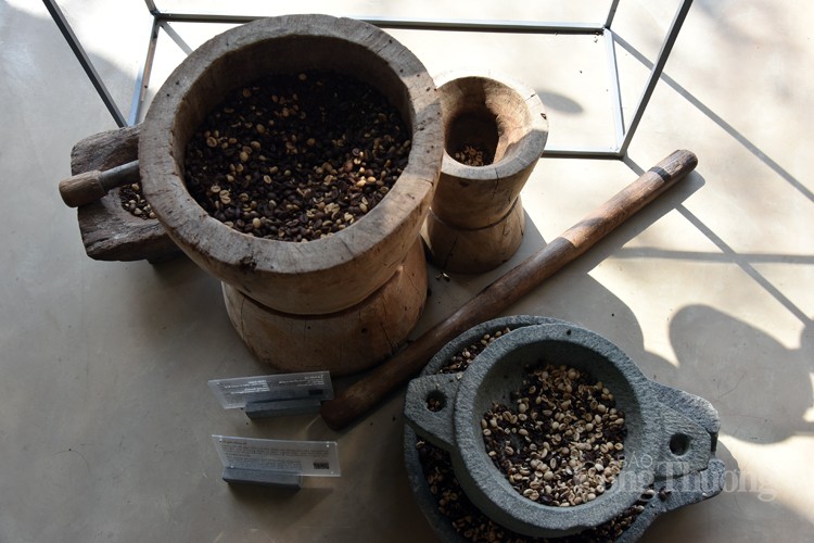 | Dụng cụ giã cà phê bằng gỗ, xay cà phê bằng đá |