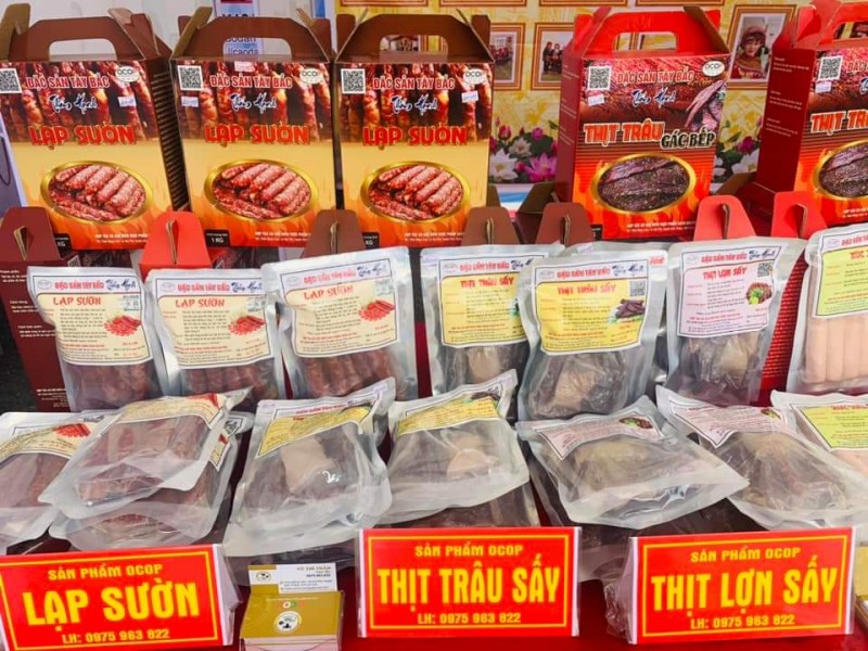 | Đại biểu tham quan gian hàng sản phẩm Ocop của Bảo Thắng tại Hội chợ |
