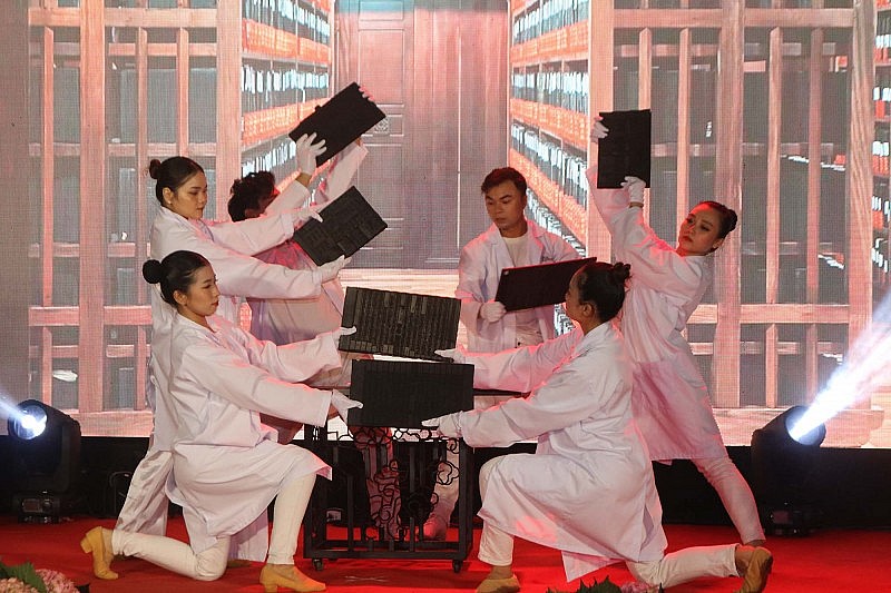 Tiết mục múa “Hành trình di sản trong thời đại số” phác họa lại hành trình tạo tác, bảo tồn và phát huy của Mộc bản |