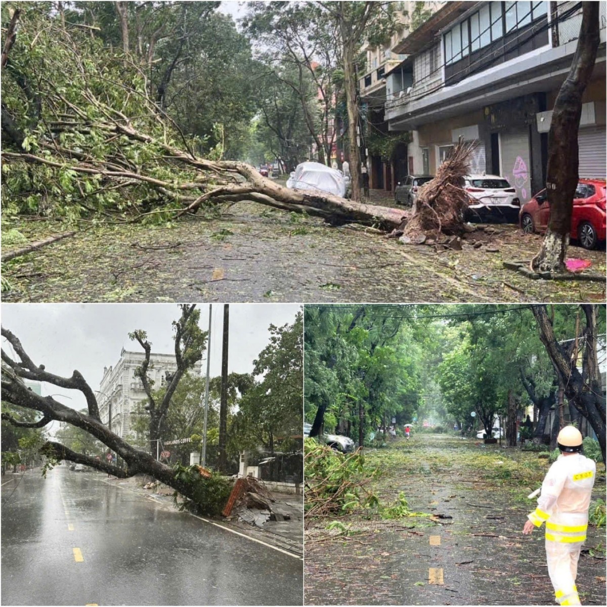 Do bão gây gió to khiến hàng loạt cây ở Hải Phòng gẫy đổ vào đường dây, cột điện gây mất điện diện rộng. Ảnh: Người dân cung cấp |