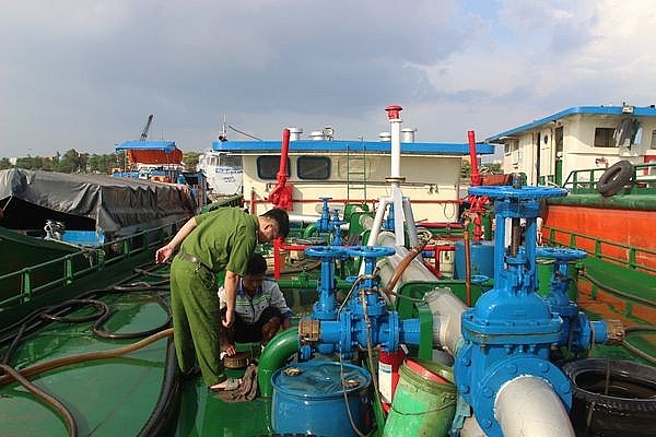 Qua kiểm tra kiểm tra trên chiếc ghe của Long, lực lượng công an phát hiện 5 phuy loại 200 lít/phuy. Trong đó, các đối tượng trên tàu Thành Lễ 2 đã hút được 1,5 phuy khoảng 300 lít xăng A95 lên ghe của Long.
