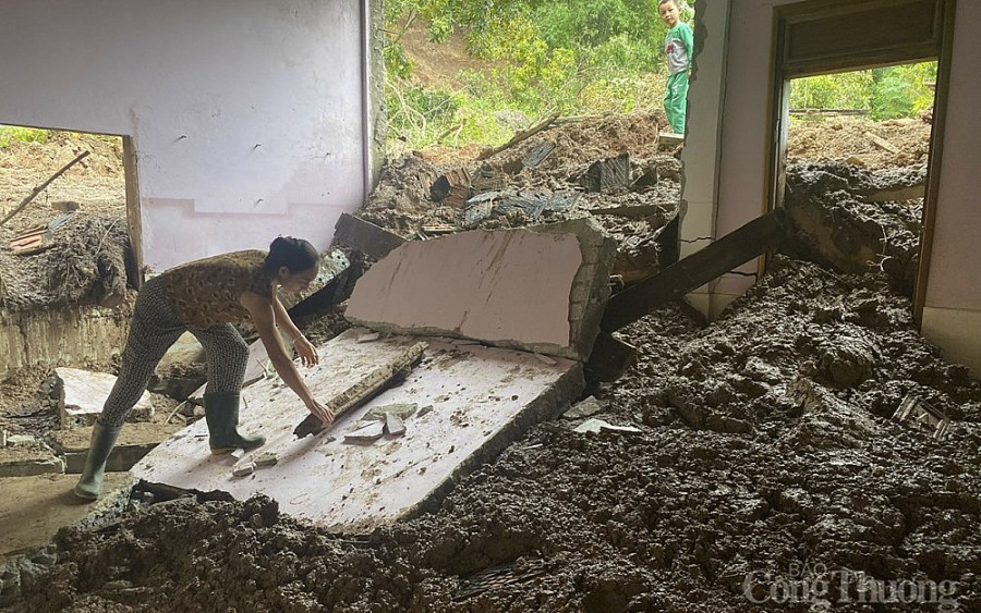 | Tại bản Can xã Tam Thái huyện Tương Dương, gia đình bà Vi Thị Loan bị hàng ngàn khối đất đá đổ xuống làm sập căn nhà vào khoảng 3h sáng ngày18/10/2021. |