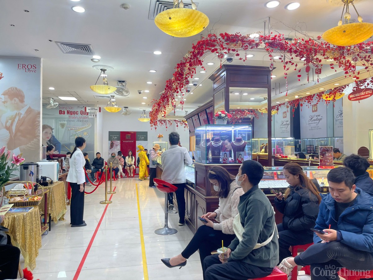 Dù giá vàng liên tục "neo" ở mức cao, sức hút của ngày vía Thần Tài vẫn không hề suy giảm. Trước thềm ngày lễ quan trọng 1 ngày (mùng 10 tháng Giêng âm lịch), các cửa hàng vàng, bạc, đá quý tại Hà Nội luôn trong tình trạng quá tải. Từ sáng sớm, dòng người đổ về các cơ sở kinh doanh vàng với mong muốn sở hữu chút "lộc" đầu năm.