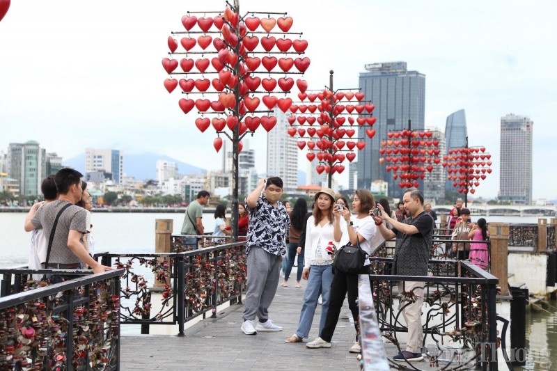 | Khách du lịch hào hứng lưu giữ lại khoảnh khắc đẹp bên gia đình, bạn bè tại TP. Đà Nẵng. |