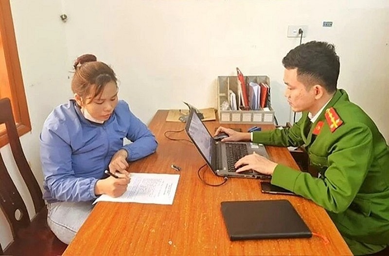 | Tiêu Thị Giang tại cơ quan công an. Ảnh Công an Nghệ An. |