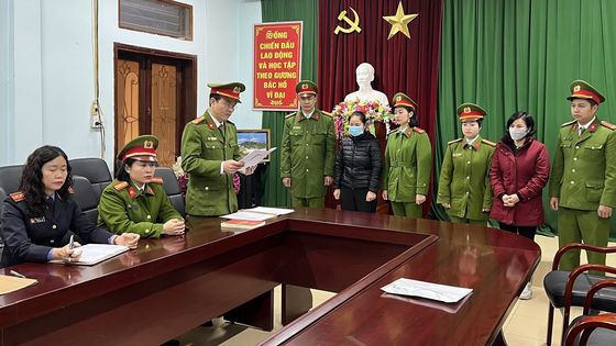 | Lực lượng chức năng đọc lệnh khởi tố các bị can |