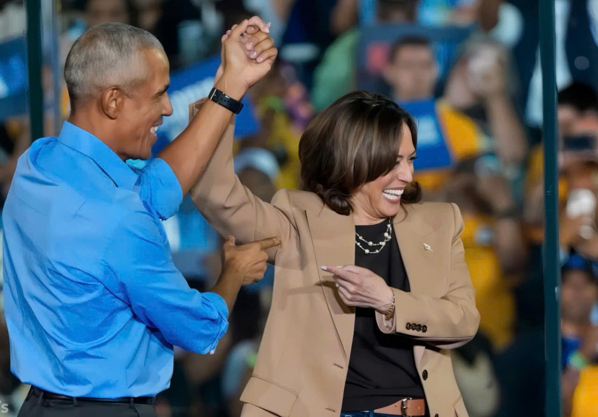 | Cựu Tổng thống Obama cùng bà Kamala Harris vận động bầu cử Mỹ ở Georgia. Ảnh: CNN |