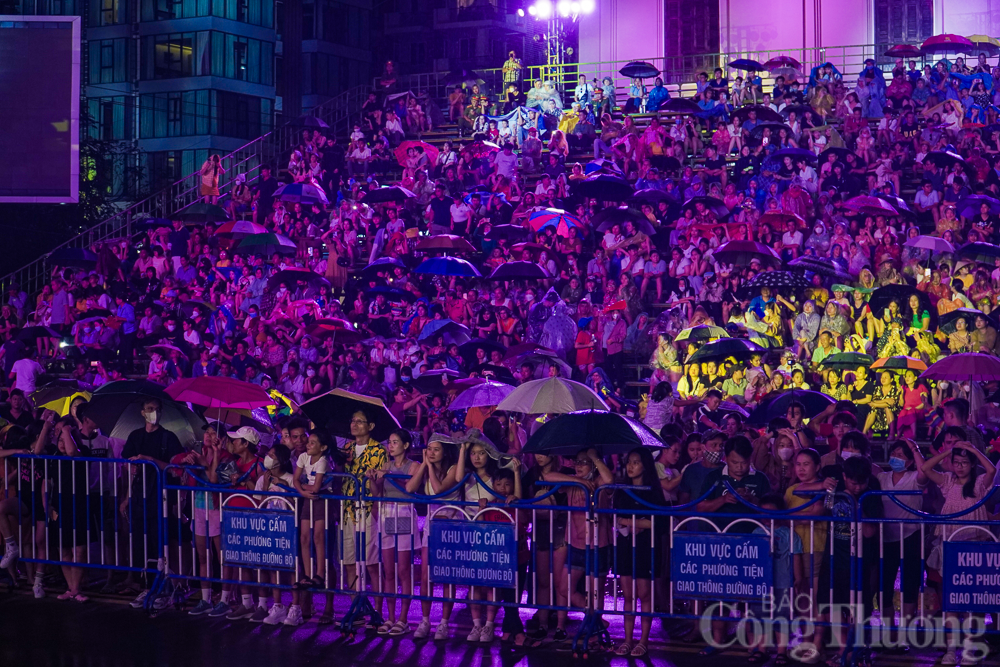 Dưới mưa, các nghệ sĩ đã cống hiến những phần biểu diễn sôi động, nhiều màu sắc, mang lại nhiều cảm xúc cho khán giả đang dầm mình trong mưa theo dõi.