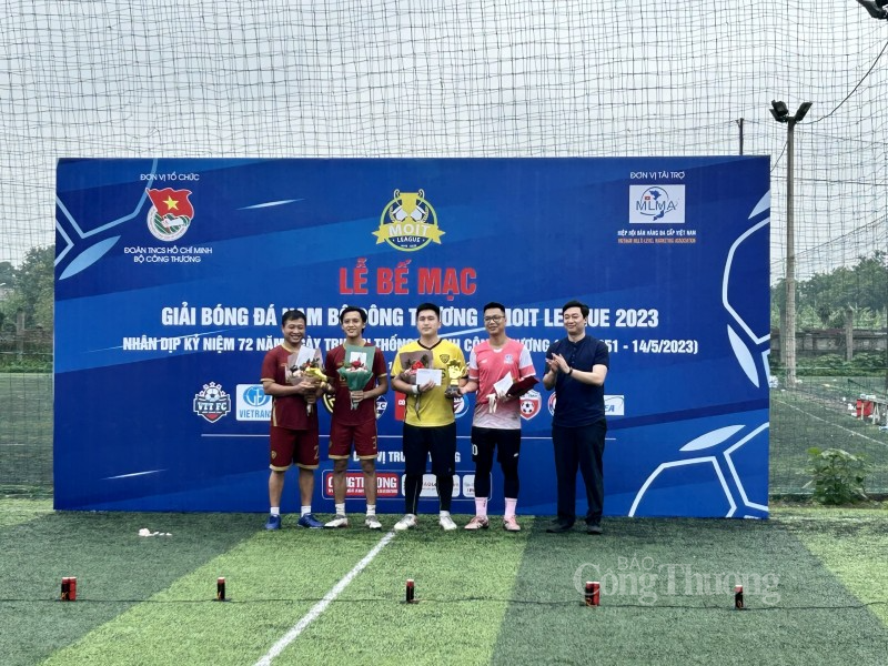 | Chủ tịch Công đoàn Bộ Công Thương Nguyễn Minh Huệ, Chủ tịch Ủy ban Cạnh tranh Quốc gia Lê Triệu Dũng, Bí thư Đoàn Thanh niên Bộ Công Thương Phạm Khắc Huy trao Cup vàng và cờ thi đua cho Đội bóng Cơ quan Tổng cục Quản lý thị trường |