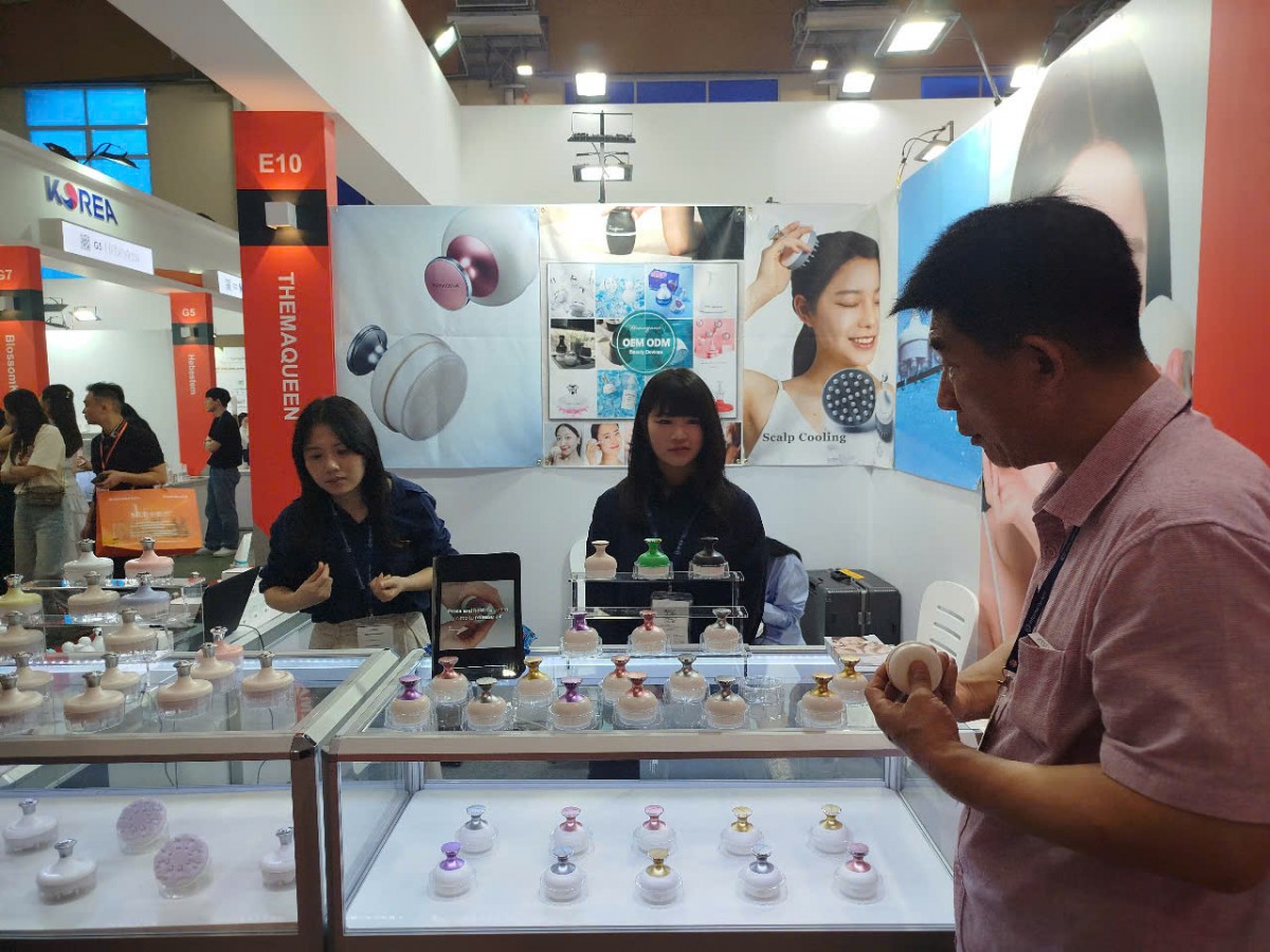 | Khách hàng thăm quan gian hàng trưng bày máy móc hỗ trợ làm đẹp. |