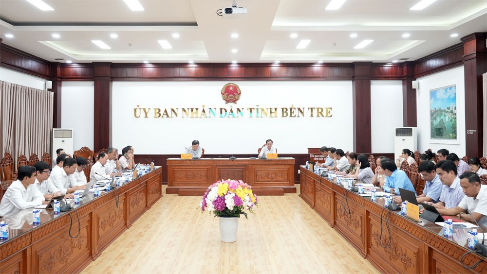 | UBND tỉnh Bến Tre làm việc với Tổng công ty Điện lực miền Nam để tháo gỡ vướng mắc khi triển khai các dự án đường dây 110 kV và trạm biến áp 110 kV trên địa bàn. Ảnh: Huyền Trang |