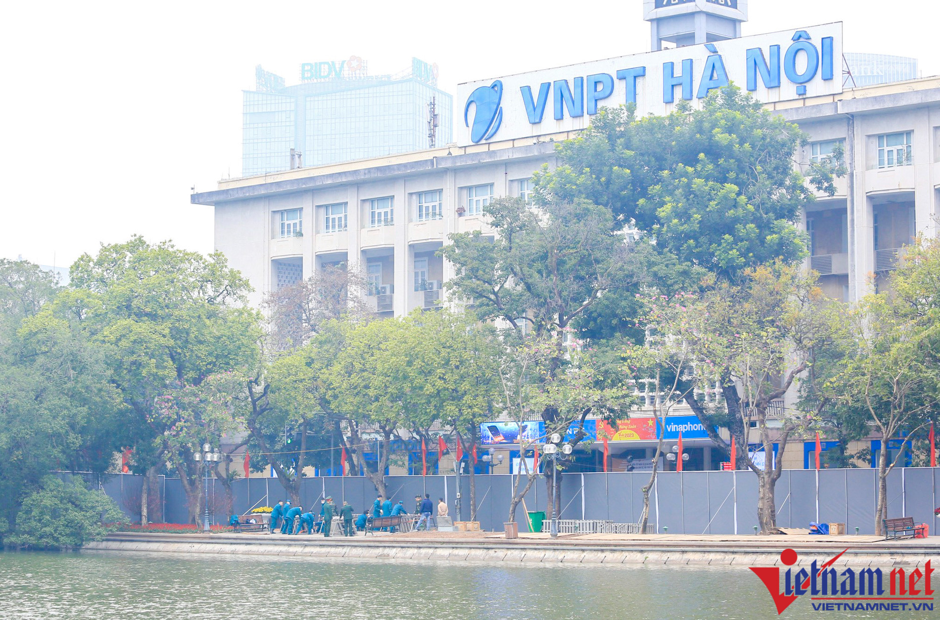 | Tại khu vực hồ Gươm, 2 trận địa bắn pháo hoa tầm cao ở phía trước trụ sở Tòa soạn Báo Hà Nội mới và Bưu điện Hà Nội. |
