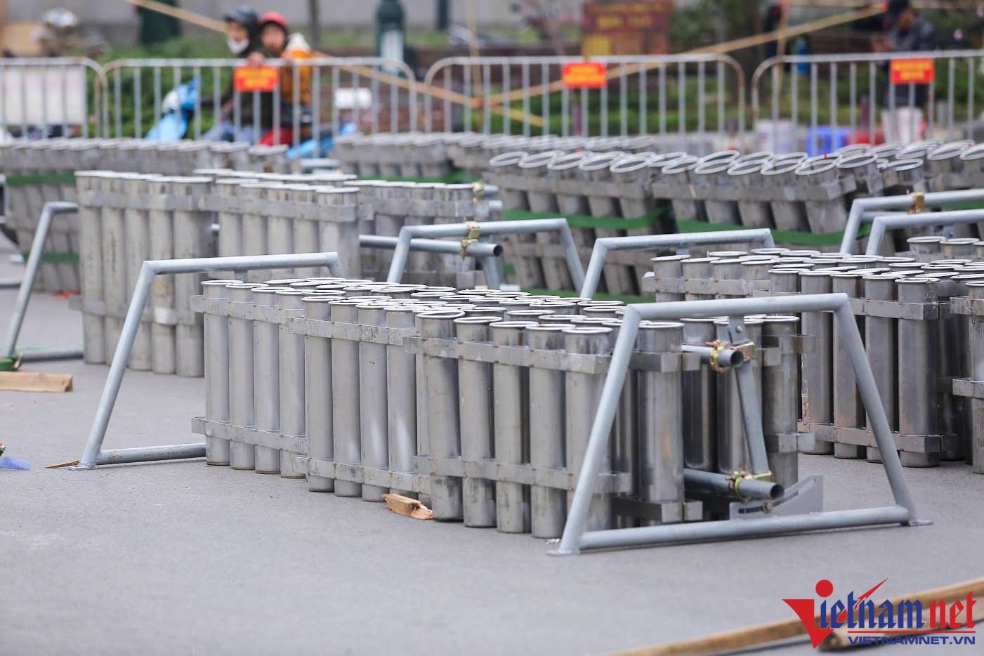 | Trận địa pháo hoa của Hà Nội đang được gấp rút lắp đặt. |