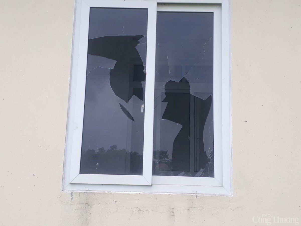 Phía bên ngoài nhà bến, cửa kính vỡ vụn