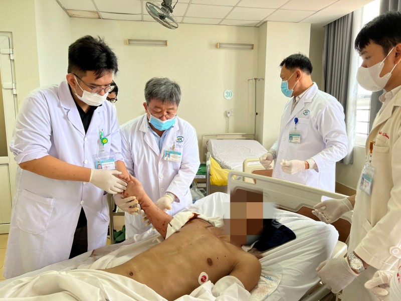 Đến thời điểm hiện tại, bệnh nhân đã hoàn toàn tỉnh táo, sức khoẻ ổn định, phần cánh tay nối sống tốt, bàn tay ấm hồng, mạch quay bắt rõ, không còn sưng, vết thương ổn định.