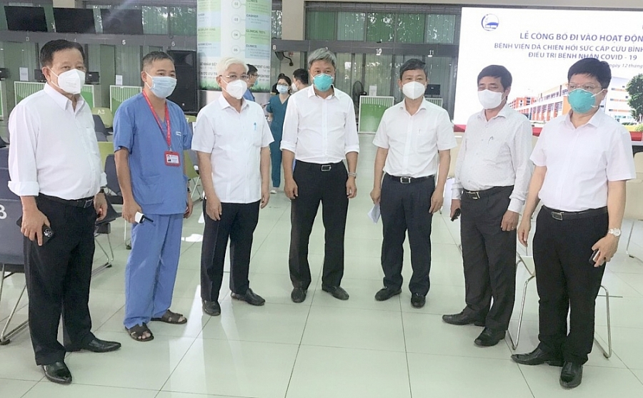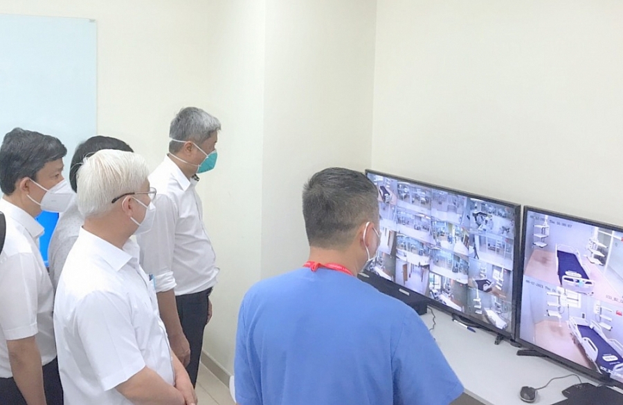 Lãnh đạo Bộ Y tế và Bình Dương kiểm tra trung tâm giám sát Bệnh viện dã chiến hồi sức cấp cứu điều trị bệnh nhân Covid