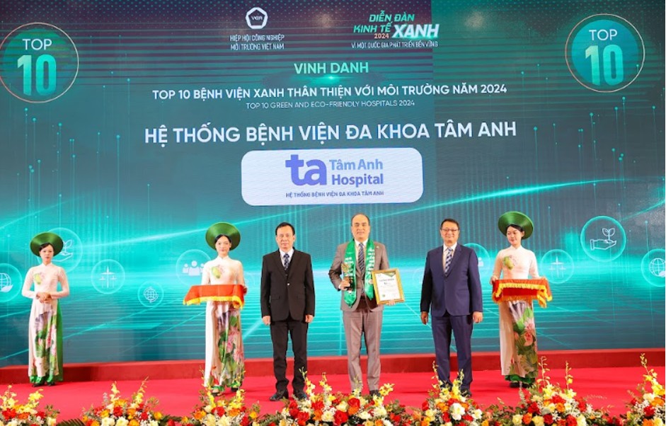 Với những nỗ lực xây dựng không gian y tế xanh - sạch - đẹp theo nguyên tắc Tiết giảm - Tái sử dụng - Tái chế, hệ thống Bệnh viện Đa khoa Tâm Anh được vinh danh top 10 bệnh viện xanh thân thiện với môi trường năm 2024 tại chương trình "Diễn đàn Kinh tế xanh vì một quốc gia phát triển bền vững" do Hiệp hội Công nghiệp Môi trường Việt Nam tổ chức.