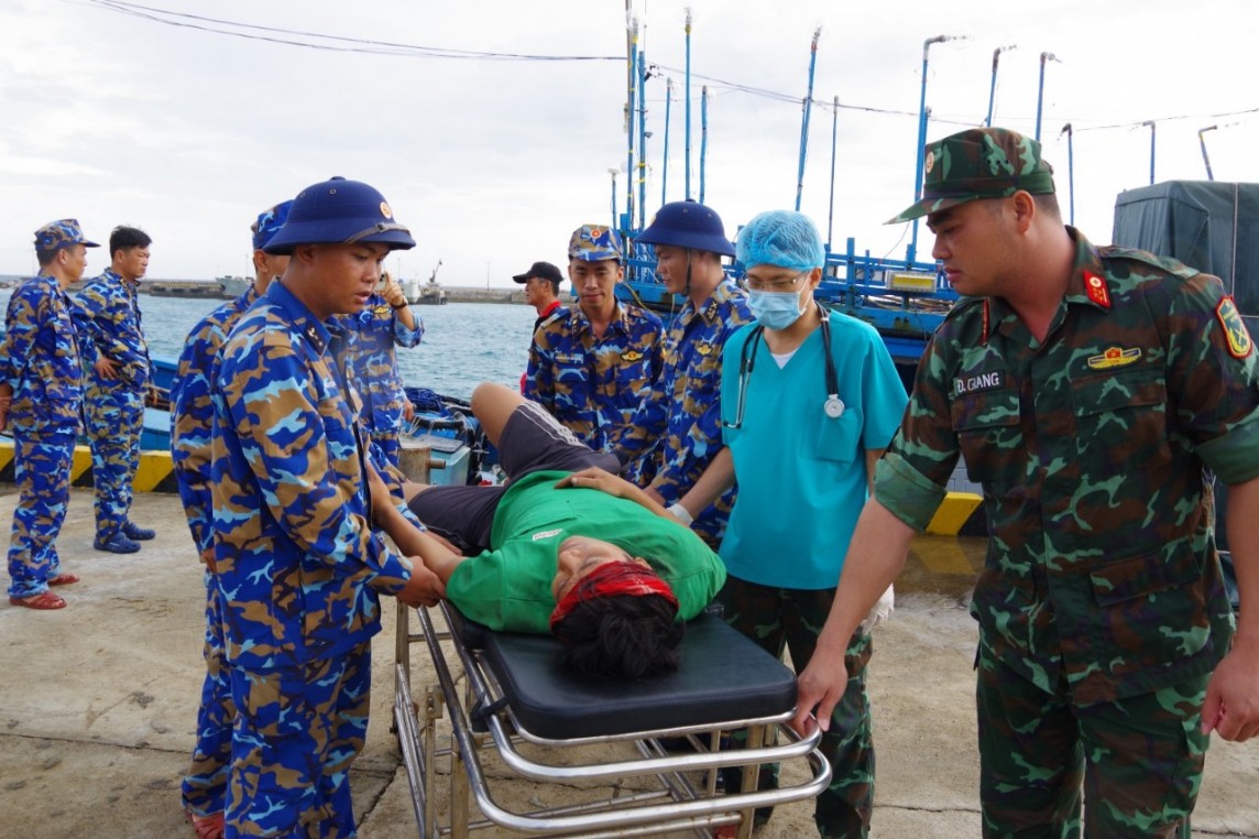 Bệnh nhân được tàu BĐ-95653TS đưa vào Bệnh xá đảo Trường Sa cấp cứu lúc 14 giờ 30, ngày 05/8.
