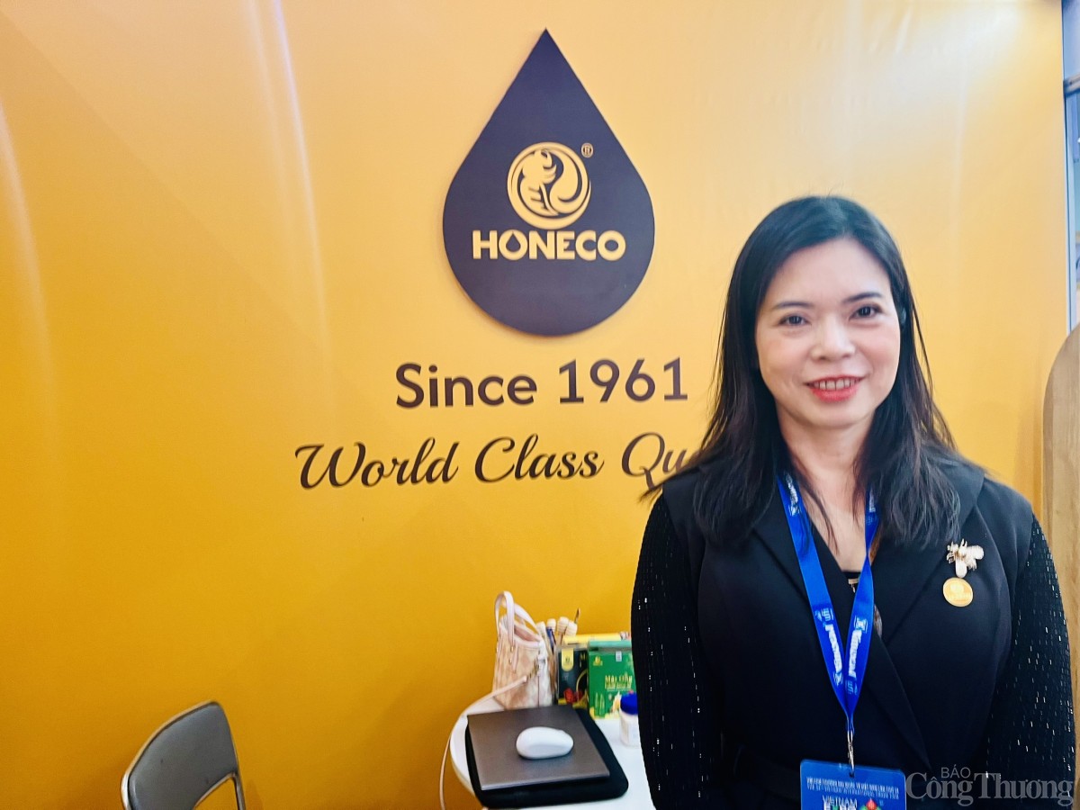 Bên lề sự kiện, phóng viên Báo Công Thương đã có cuộc trò chuyện cùng bà Lê Thị Nga – Tổng giám đốc Công ty Cổ phần Ong Tam Đảo - Honeco. Trong gian hàng của doanh nghiệp tại buổi triển lãm, bà Nga đã chia sẻ câu chuyện xúc tiến và khẳng định vị thế quốc tế qua sản phẩm chủ lực là mật ong Tam Đảo.