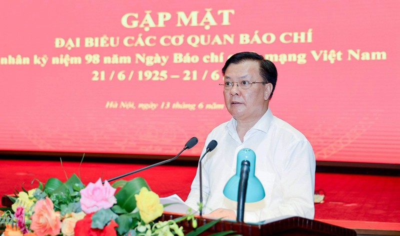 Thay mặt lãnh đạo thành phố phát biểu chúc mừng các nhà báo, Bí thư Thành ủy Hà Nội Đinh Tiến Dũng gửi lời chúc mừng nhân Ngày báo chí Cách mạng Việt Nam đến các cán bộ, phóng viên, biên tập viên các cơ quan báo chí.