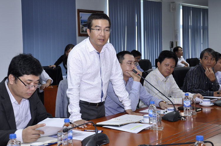 Phó Tổng giám đốc BSR kiêm Trưởng ban Quản lý Dự án NCMR NMLD Dung Quất Nguyễn Việt Thắng báo cáo tại buổi làm việc. |