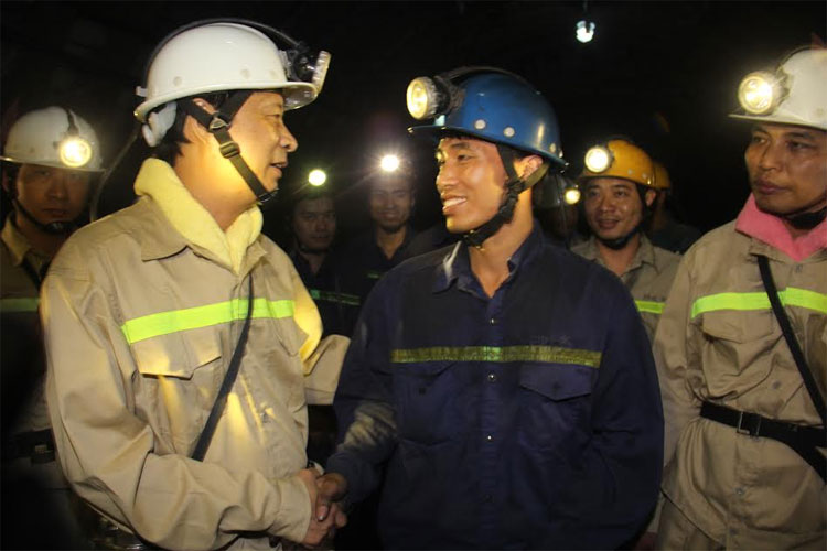 Làm việc với tập thể lãnh đạo chủ chốt Công ty Than Khe Chàm, ông Nguyễn Huy Nam, Bí thư Đảng ủy, Giám đốc công ty đã báo cáo về tình hình sản xuất, việc làm, đời sống của CNVCLĐ. Theo đó, Công ty Than Khe Chàm là đơn vị sản xuất than hầm lò luôn đi đầu thực hiện cơ giới hóa, áp dụng khoa học kỹ thuật, công nghệ mới vào sản xuất nhằm tăng năng suất, giảm giá thành, nâng cao hiệu quả sản xuất kinh doanh, không ngừng cải thiện điều kiện làm việc và chăm lo đời sống của người lao động với mức thu nhập bình quân đạt 11,636 triệu đồng/người/tháng; trong đó thợ lò đạt bình quân 13,9 triệu đồng/người/tháng.