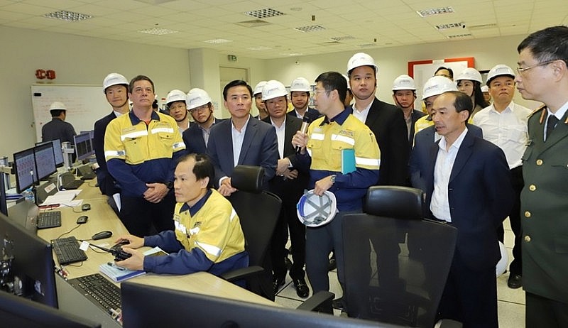 | Bí thư Tỉnh ủy Thanh Hóa Đỗ Trọng Hưng và các thành viên trong đoàn thăm Trung tâm điều hành Nhà máy Nhiệt điện BOT Nghi Sơn 2 |