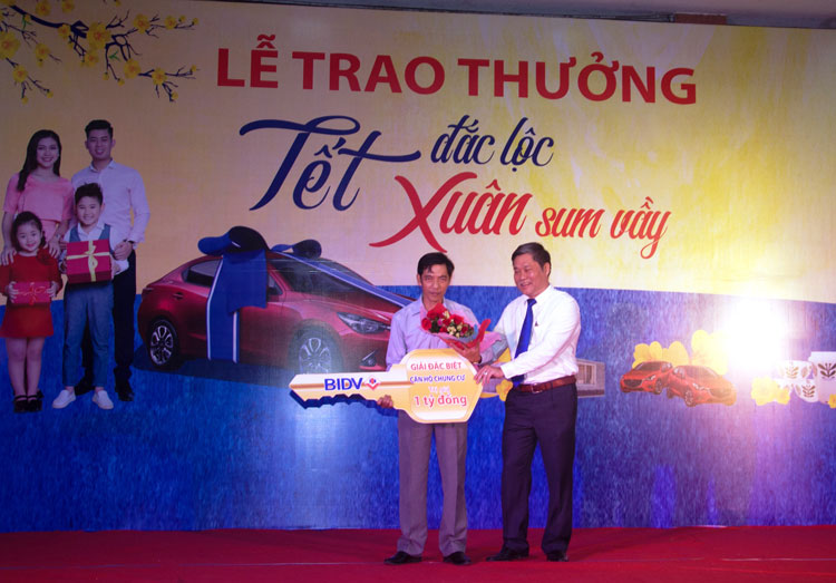 Chương trình “Tết đắc lộc - Xuân sum vầy” của BIDV diễn ra từ ngày 2/1/2018 và kết thúc vào ngày 22/2/2018 với nhiều giải thưởng hấp dẫn. Gần 200.000 khách hàng đã nhận được các giải thưởng may mắn của chương trình với tổng giá trị gần 17 tỷ đồng.