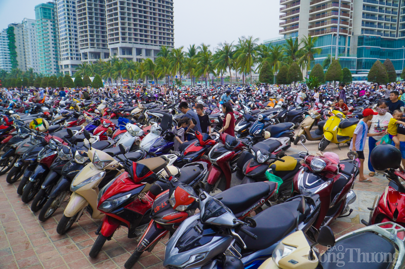 | Các bãi giữ xe tại các bãi tắm ở Đà Nẵng chật kín, báo hiệu sự sôi động trong ngày đầu của kỳ nghỉ lễ. |