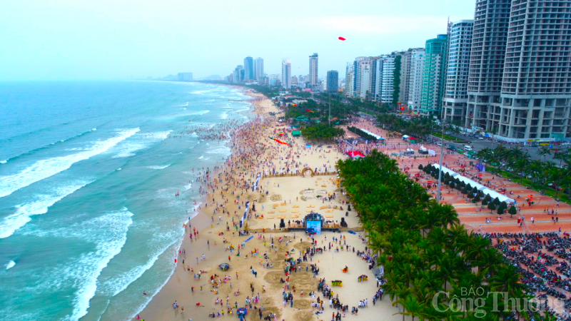 Hàng nghìn du khách đổ về các bãi biển thành phố Đà Nẵng trong ngày đầu nghỉ Lễ 30/4 – 1/5, tạo nên không khí sôi động, náo nhiệt.