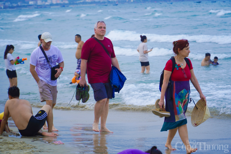 | Ghi nhận của PV Báo Công Thương, trong tiết trời nắng nhẹ, tại các bãi biển Phạm Văn Đồng, Mỹ Khê... chật kín người dân và du khách. |