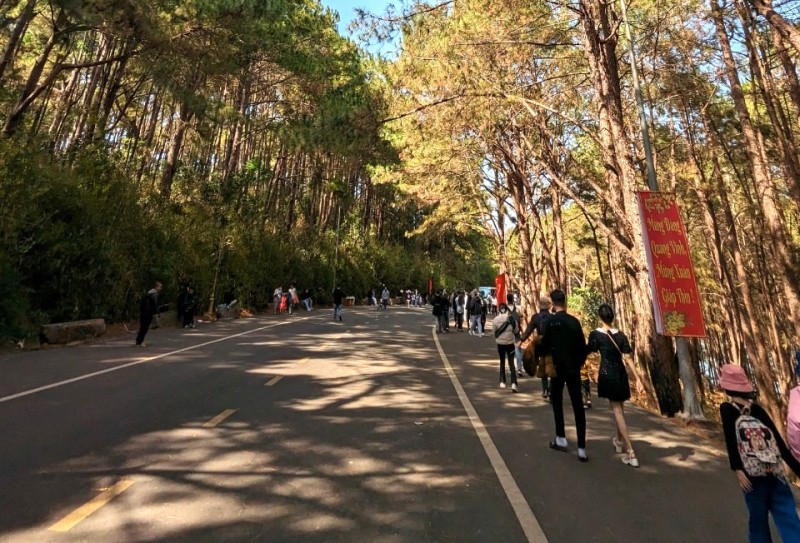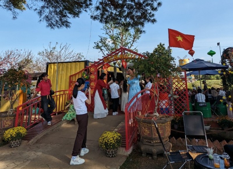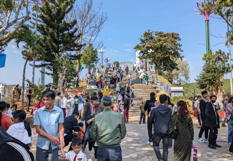| Bên trong khu du lịch rất đông người dân đến du xuân |