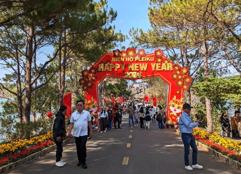 | Ngày mùng 4 Tết, lượng lớn du khách đến Biển hồ Pleiku (tỉnh Gia Lai) |