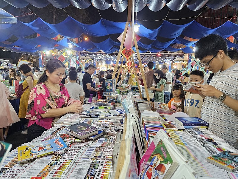 | Đường sách Giáp Thìn 2024 là điểm đến được người dân yêu thích trong buổi tối 30 tháng Chạp |