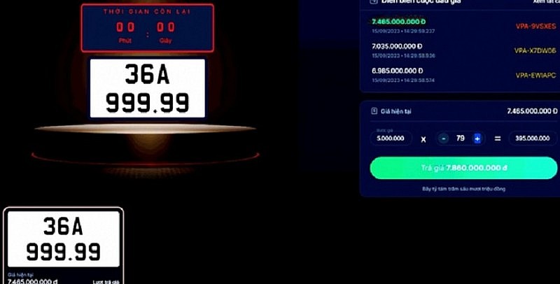 Tại phiên đấu giá biển số xe ô tô chiều vào 15/9 do Công ty đấu giá Hợp danh Việt Nam đã tổ chức đưa biển số ôtô “VIP” của tỉnh Thanh Hóa là 36A - 999.99 ra đấu giá và đã có chủ nhân “chốt” với giá giá 7,47 tỉ đồng.