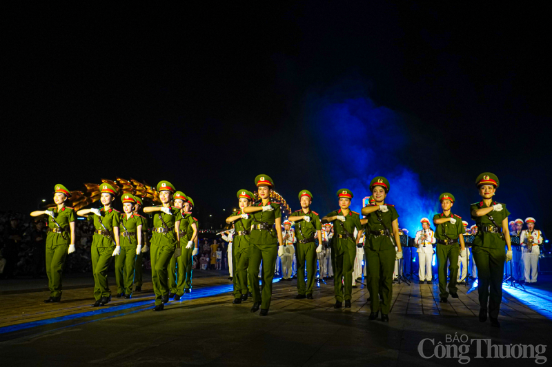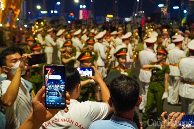 | Đoàn Nghi lễ Công an nhân dân biểu diễn tại khu vực bờ Tây cầu Rồng. |