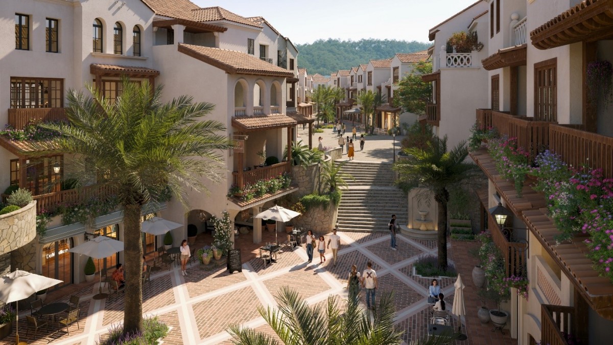 Mỗi căn biệt thự nơi đây là phiên bản “may đo” theo địa thế, cảnh quan và góc nhìn riêng biệt - góp phần tạo nên khu phố lô xô giàu nhịp điệu, như “ngôi làng châu Âu” giữa thung lũng. Vẻ đẹp Địa Trung Hải xuyên suốt trong từng chi tiết nhỏ: mái ngói đỏ nung ấm áp, vòm cửa uốn cong mềm mại, ban công và cửa sổ rộng mở, tường dày trát vữa...
