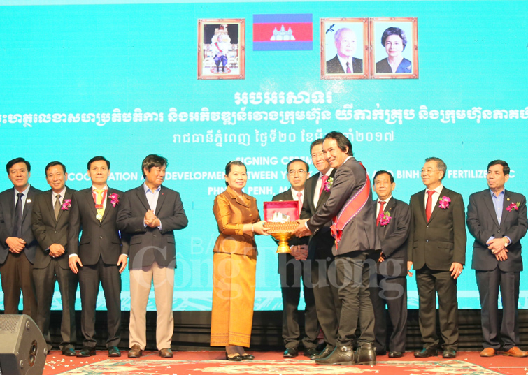 Phát biểu tại lễ ký kết, bà Lok Chumter Dr. Men Sam An - Phó Thủ tướng Thường trực Chính phủ Vương quốc Campuchia đánh giá cao những thành quả và nỗ lực đóng góp của Bình Điền đối với sự nghiệp phát triển của nền nông nghiệp Campuchia. Phó Thủ tướng Campuchia nhấn mạnh, phân bón NPK của Công ty Cổ phần Phân bón Bình Điền rất được nông dân Campuchia ưa chuộng, sử dụng đại trà trên đồng ruộng; và đây cũng là một trong những yếu tố giúp hiện đại hóa nông nghiệp nông thôn Campuchia. Bà Men Sam An cũng đánh giá cao những đóng góp khác của Bình Điền tại Campuchia như xây nhà tình nghĩa, hỗ trợ đồng bào lũ lụt, tặng cặp sách cho học sinh nghèo.