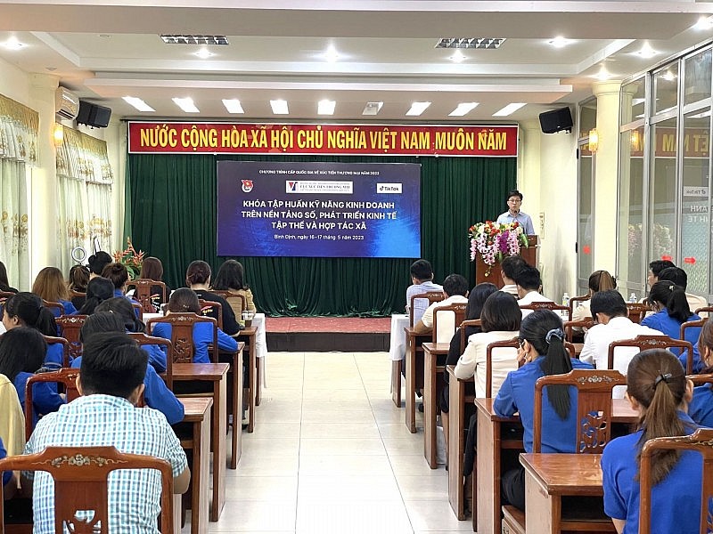 Cụ thể, Cục Xúc tiến thương mại, Bộ Công Thương phối hợp với Tỉnh Đoàn tỉnh Bình Định và nền tảng mạng xã hội Tiktok tổ chức "Khóa Tập huấn kỹ năng kinh doanh trên nền tảng số phát triển thương hiệu, xây dựng hình ảnh cho kinh tế tập thể và hợp tác xã" từ ngày 16-17/5/2023. Khóa tập huấn thu hút hơn 50 học viên là Chủ tịch Hội đồng quản trị, giám đốc, thành viên các hợp tác xã, doanh nghiệp trên địa bàn tỉnh.