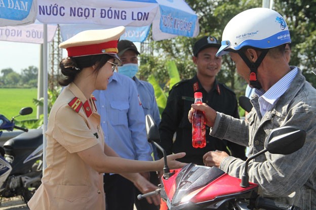 “Chúng tôi thực hiện sau Tết bởi người dân trở về lại các tỉnh, thành phố phía Nam phải vượt một chặng đường dài, thông thường người dân đi sớm, đến địa bàn tỉnh Bình Định sẽ rất mệt mỏi. Do đó, khi cán bộ Công an dừng xe phát nước suối, khăn lạnh và xăng sẽ giúp người dân có thời gian nghỉ ngơi, xua tan mệt mỏi, đây cũng là biện pháp để nhắc nhở cho người tham gia giao thông ý thức hơn trong việc giữ gìn sức khoẻ, đảm bảo an toàn trong quá trình lưu thông trên đường” - Trung tá Hiếu thông tin.
