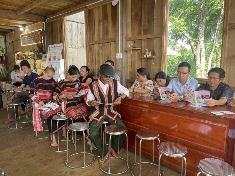 | Đồng bào các dân tộc được hướng dẫn giới thiệu về cách thức quảng bá thương hiệu sản phẩm |