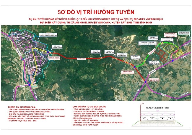 Dự án Tuyến đường kết nối từ Quốc lộ 19 đến Khu Công nghiệp, Đô thị và Dịch vụ Becamex Vsip Bình Định đi qua địa phận thị xã An Nhơn, các huyện Tây Sơn và Vân Canh, với chiều dài tuyến khoảng khoảng 19,5km, có tổng vốn đầu tư 1.171 tỷ đồng. Tuyến đường thiết kế theo tiêu chuẩn đường cấp III, nền đường rộng 12m, mặt đường rộng 11m (4 làn xe) kèm theo các hệ thống, công trình phụ. Theo tiến độ, tuyến đường thi công hoàn thành trong thời gian 24 tháng.