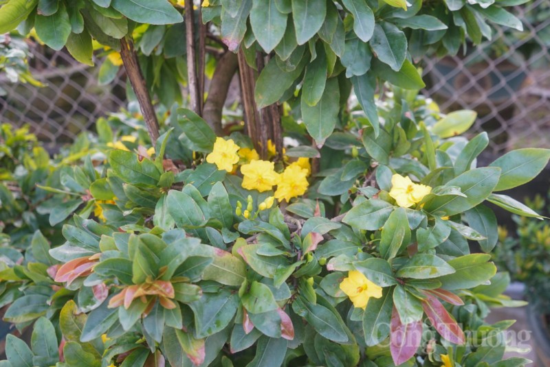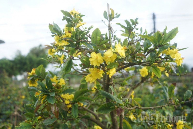 | Thời tiết thất thường khiến mai chưa lặt lá mà hoa đã bung nở |