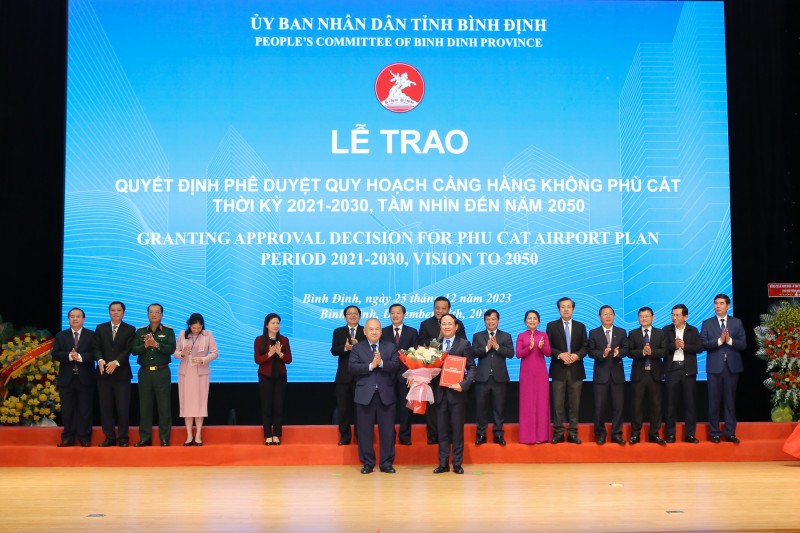Trong khuôn khổ hội nghị công bố Quy hoạch tỉnh Bình Định, dưới sự chứng kiến của Phó Thủ tướng Chính phủ Lê Minh Khái, Thứ trưởng Bộ Kế hoạch và Đầu tư Đỗ Thành Trung đã trao Quyết định Quy hoạch Cảng hàng không Phù Cát cho lãnh đạo tỉnh Bình Định. Đây là cơ sở quan trọng để tỉnh Bình Định triển khai các bước đầu tư, nâng cấp Cảng hàng không Phù Cát trong tương lai; đồng thời, nỗ lực trong công tác thu hút đầu tư, qua đó thu hút nhiều doanh nghiệp, nhà đầu tư đầu tư vào các lĩnh vực: công nghiệp, du lịch, dịch vụ cảng và logistics, phát triển nông - lâm nghiệp - thủy sản dựa trên công nghệ cao, phát triển kinh tế đô thị gắn với quá trình đô thị hóa, góp phần đưa Bình Định trở thành một trong những điểm sáng của khu vực miền Trung. |