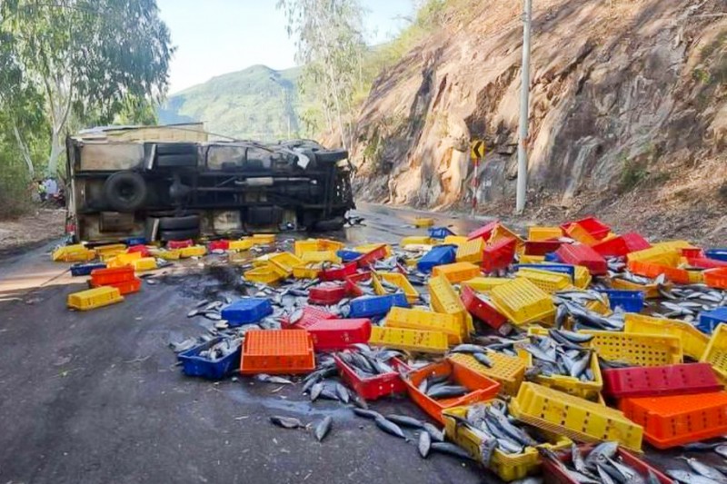 Thông tin ban đầu, khoảng 5h45 sáng 26/8, xe ô tô tải biển kiểm soát 77H-035.32 chở cá do Phan Xuân Ảnh (53 tuổi, trú phường Ngô Mây, thành phố Quy Nhơn, tỉnh Bình Định) điều khiển lưu thông trên Quốc lộ 1D hướng Bắc - Nam.