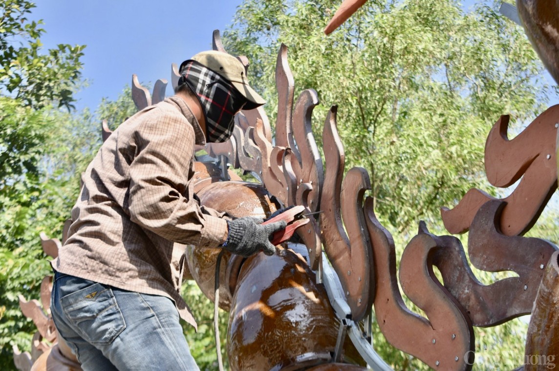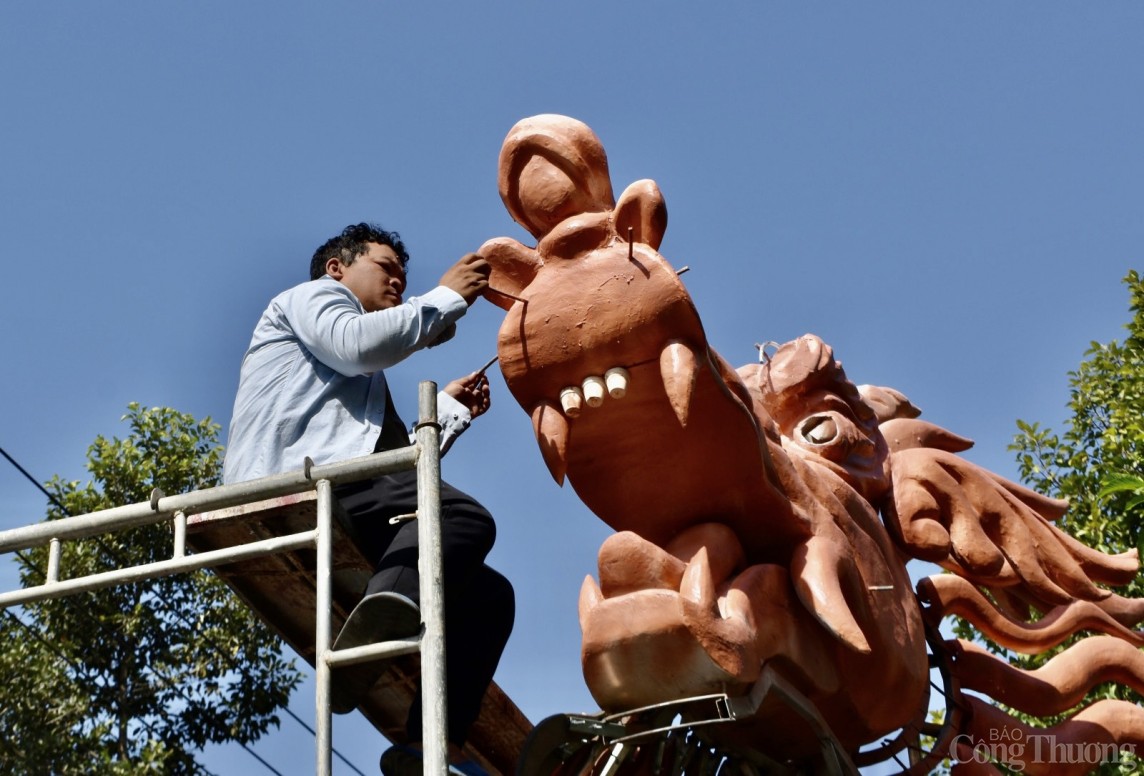 | Các nghệ nhân ở làng nghề gốm sứ Tương Bình Hiệp có rất nhiều tâm huyết để tạo hình cho hai linh vật rồng nghinh xuân Giáp Thìn 2024 vừa qua |