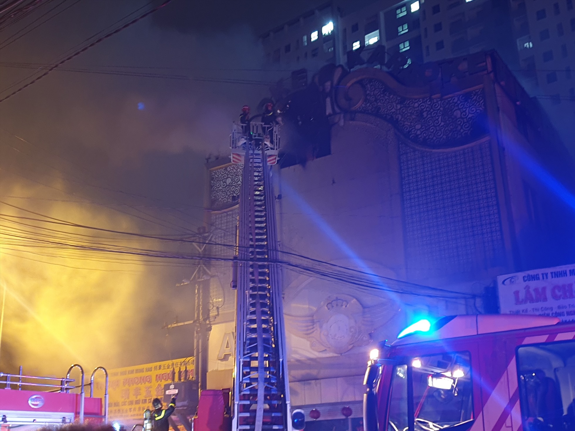 Trước đó, Báo Lao Động đã đưa tin vụ cháy quán karaoke ở địa chỉ trên lúc 21h ngày 6.9. Ghi nhận tại hiện trường vụ cháy là quán karaoke có 3-4 tầng. Khu vực cháy khoảng 400m2 gồm nhiều phòng hát ở tầng 2 và tầng 3.